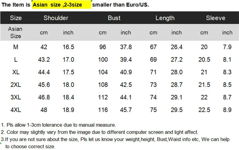 Ex: If you wear S on US Size, it is better if You Choose L on the Asian Size.